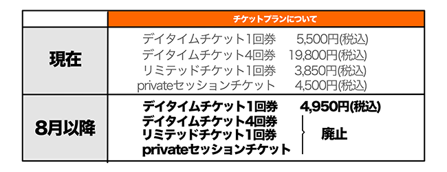 ①08月01日(木)より、取り扱いチケットプランを改正させていただきます。
